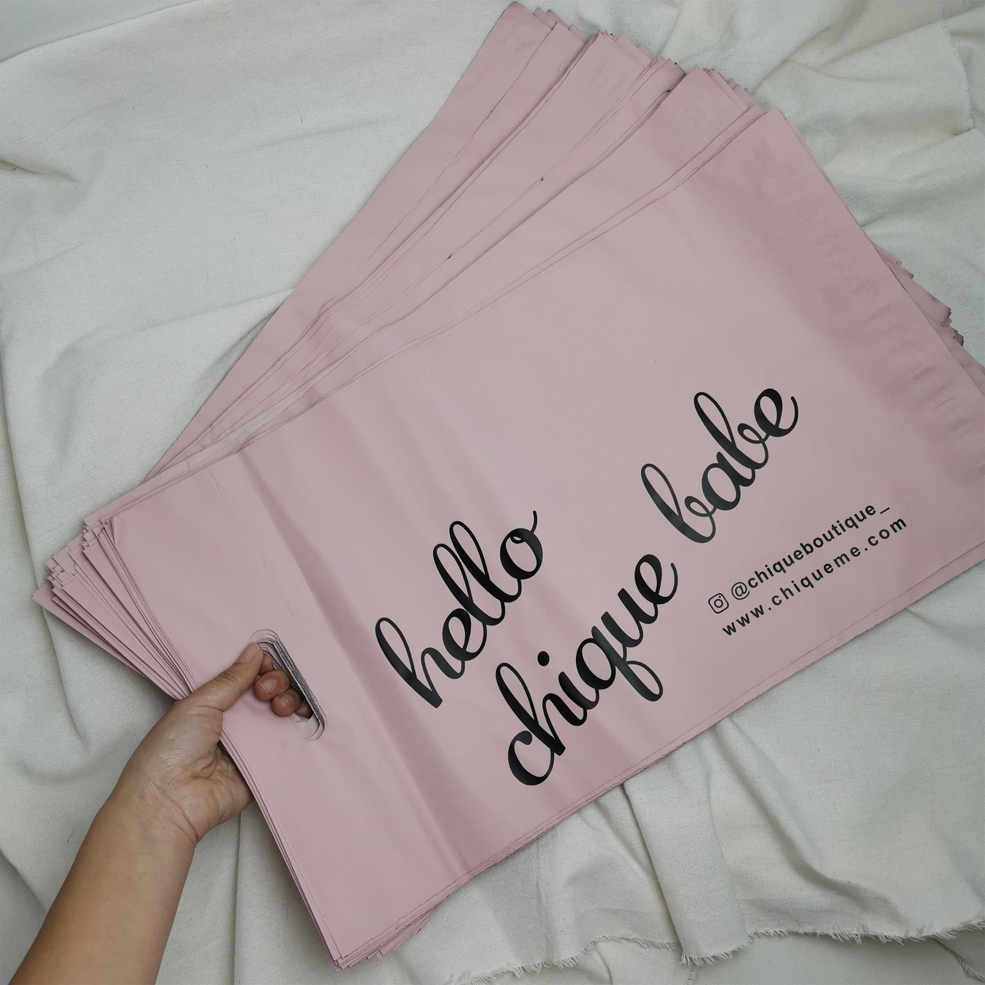 • Load image into Gallery viewer, Custom Logo Printed Clothing Custom Plastic Bag pink Handle Packing Bag