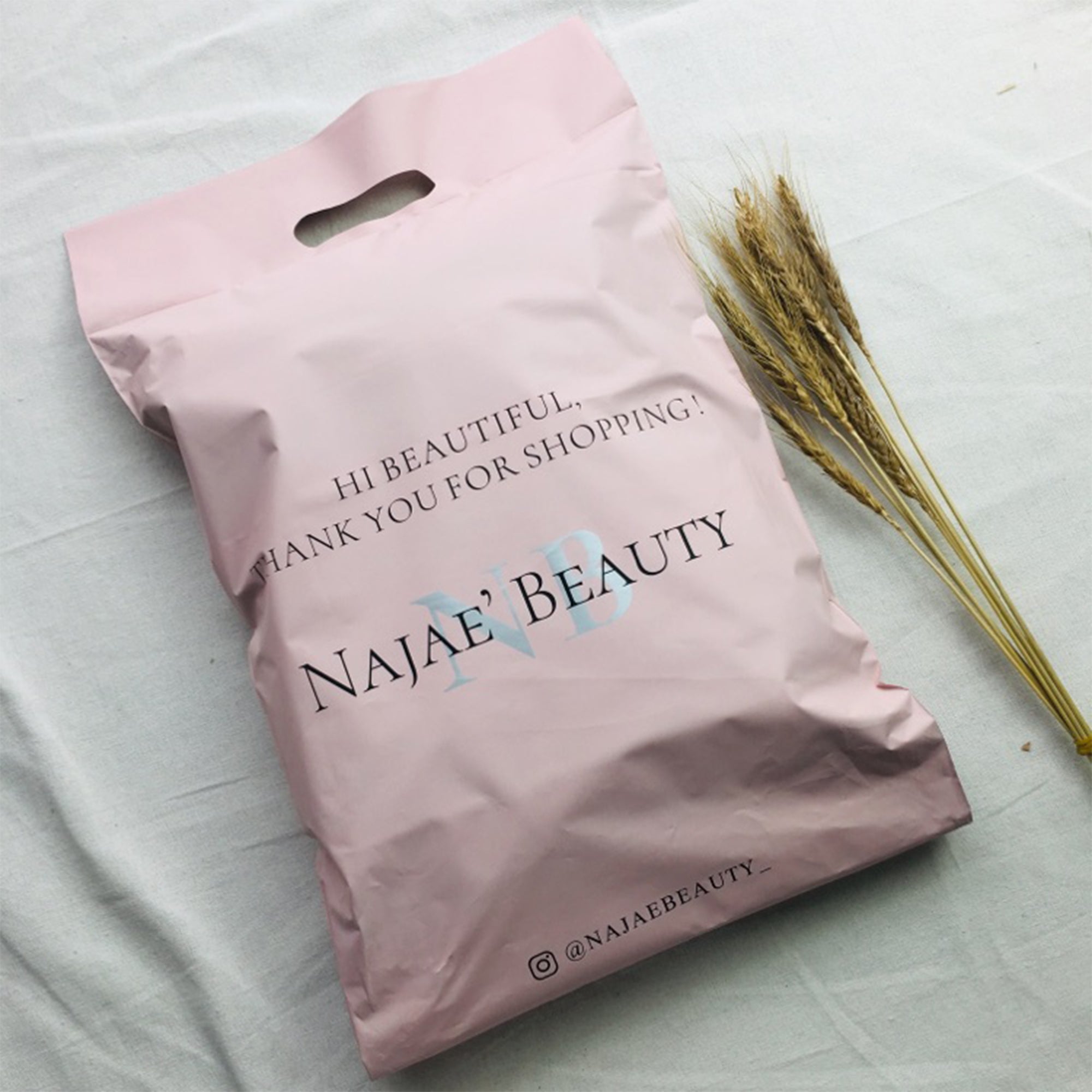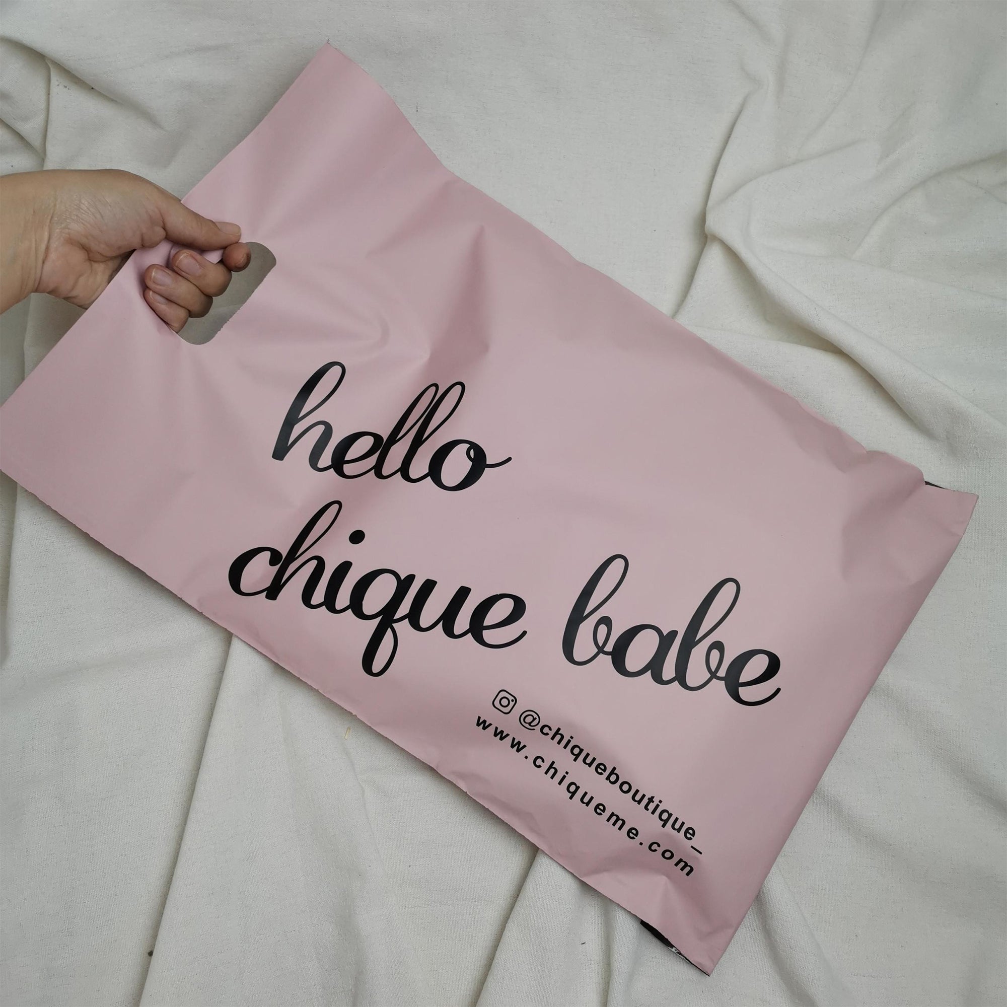 Custom Logo Printed Clothing Custom Plastic Bag pink Handle Packing Bag