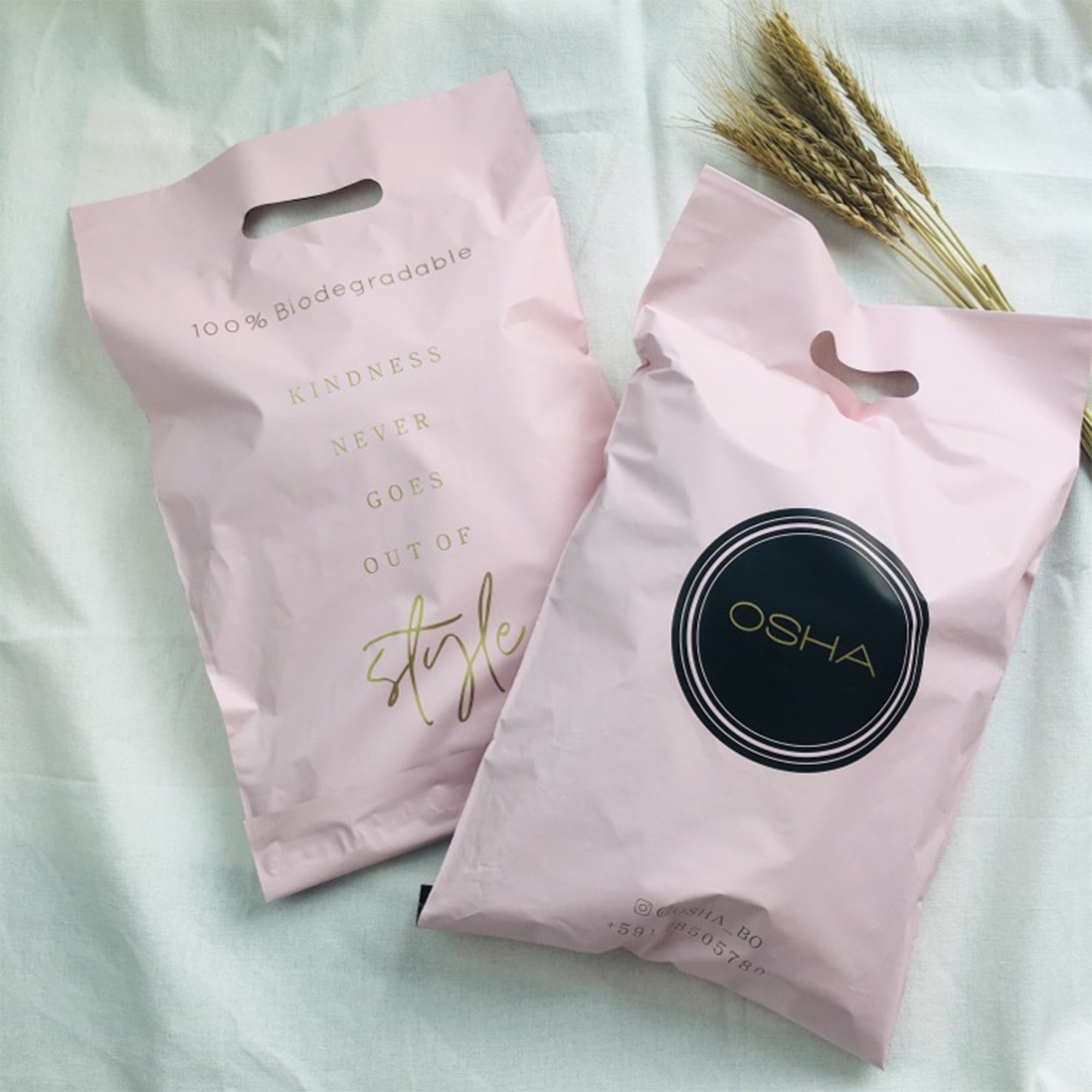 • Load image into Gallery viewer, custom printed eco friendly plastic mail courier handle bags with logo